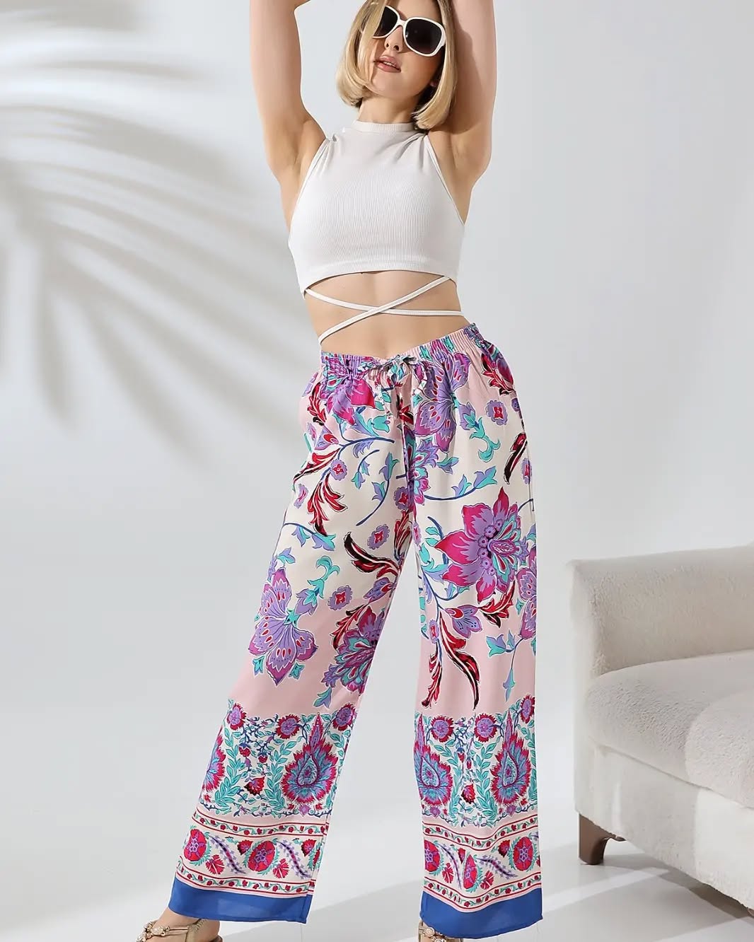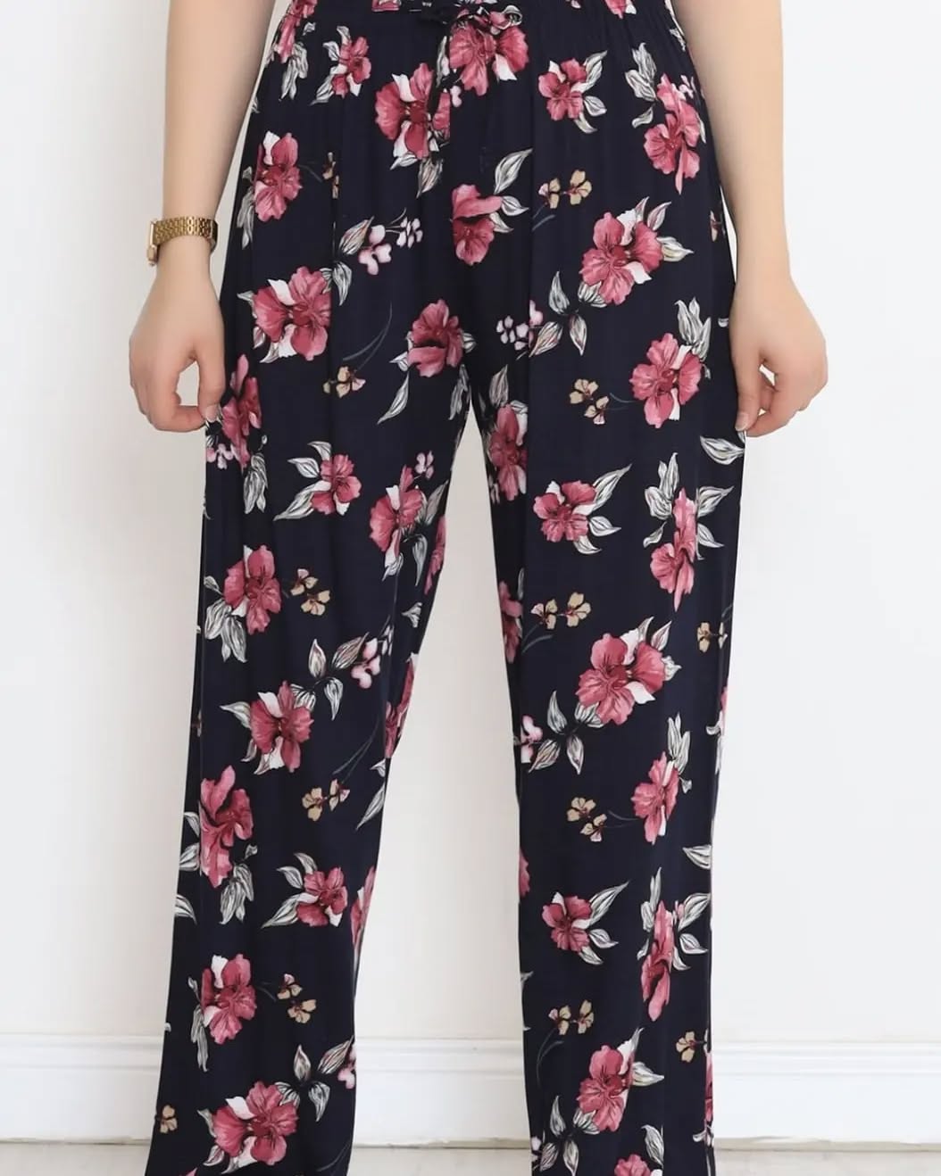 Çiçek Desenli Viskon Pantolon