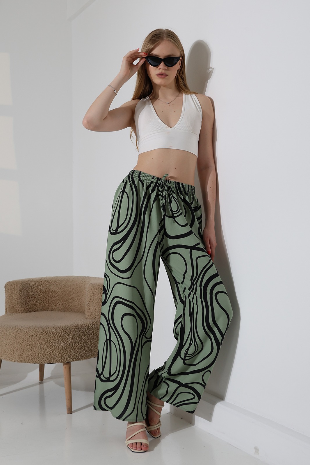 Beyaz Viskon Pantolon
