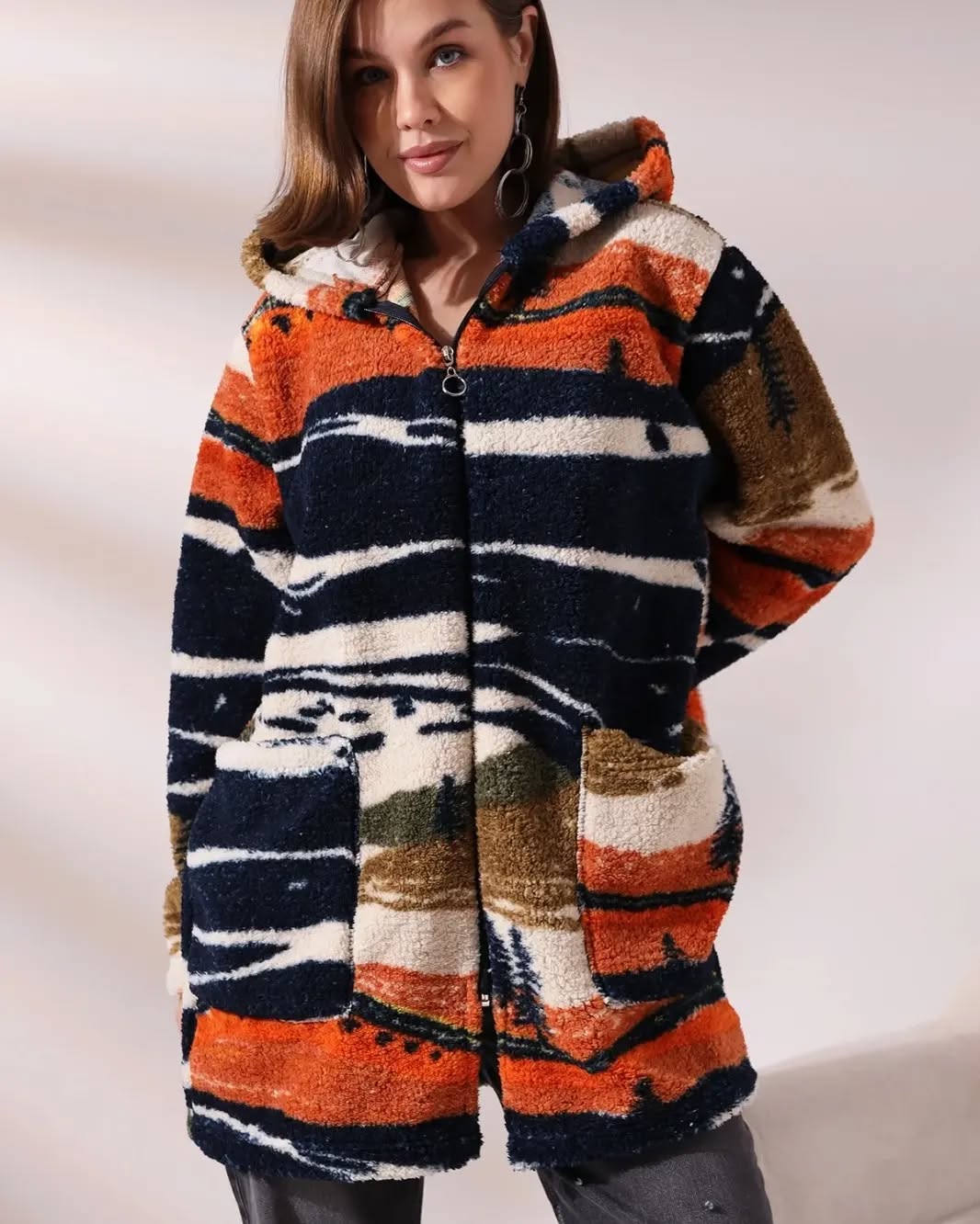 Çok Renkli Kapüşonlu Desenli Welsoft Mont